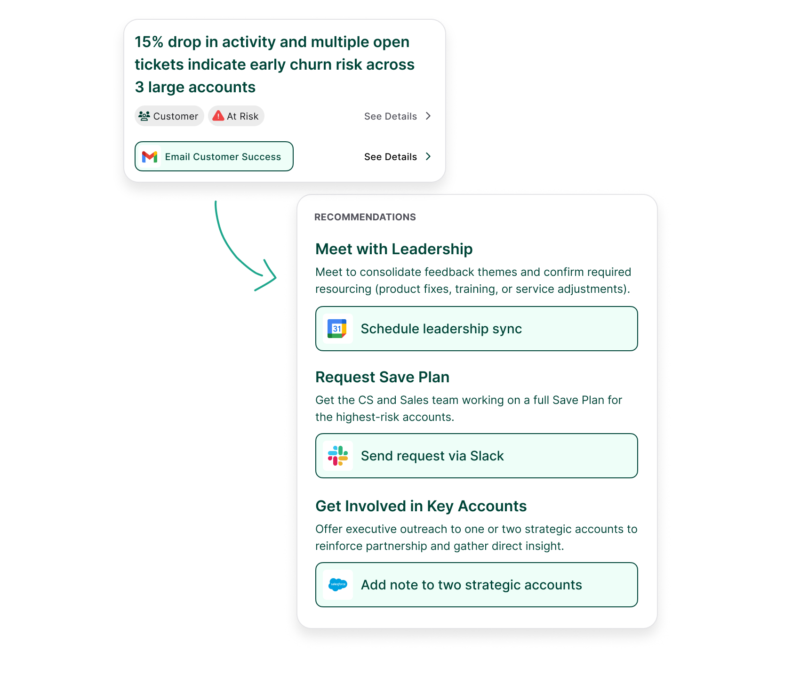Protect renewals and expansions by spotting customer risk while there’s still time to act.